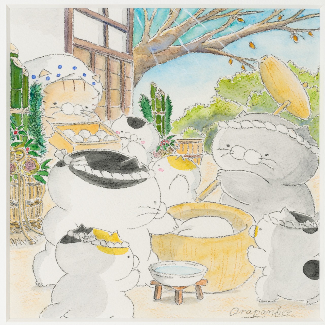 あらまつぱん子 原画G 「寿ぐ」 額装込み