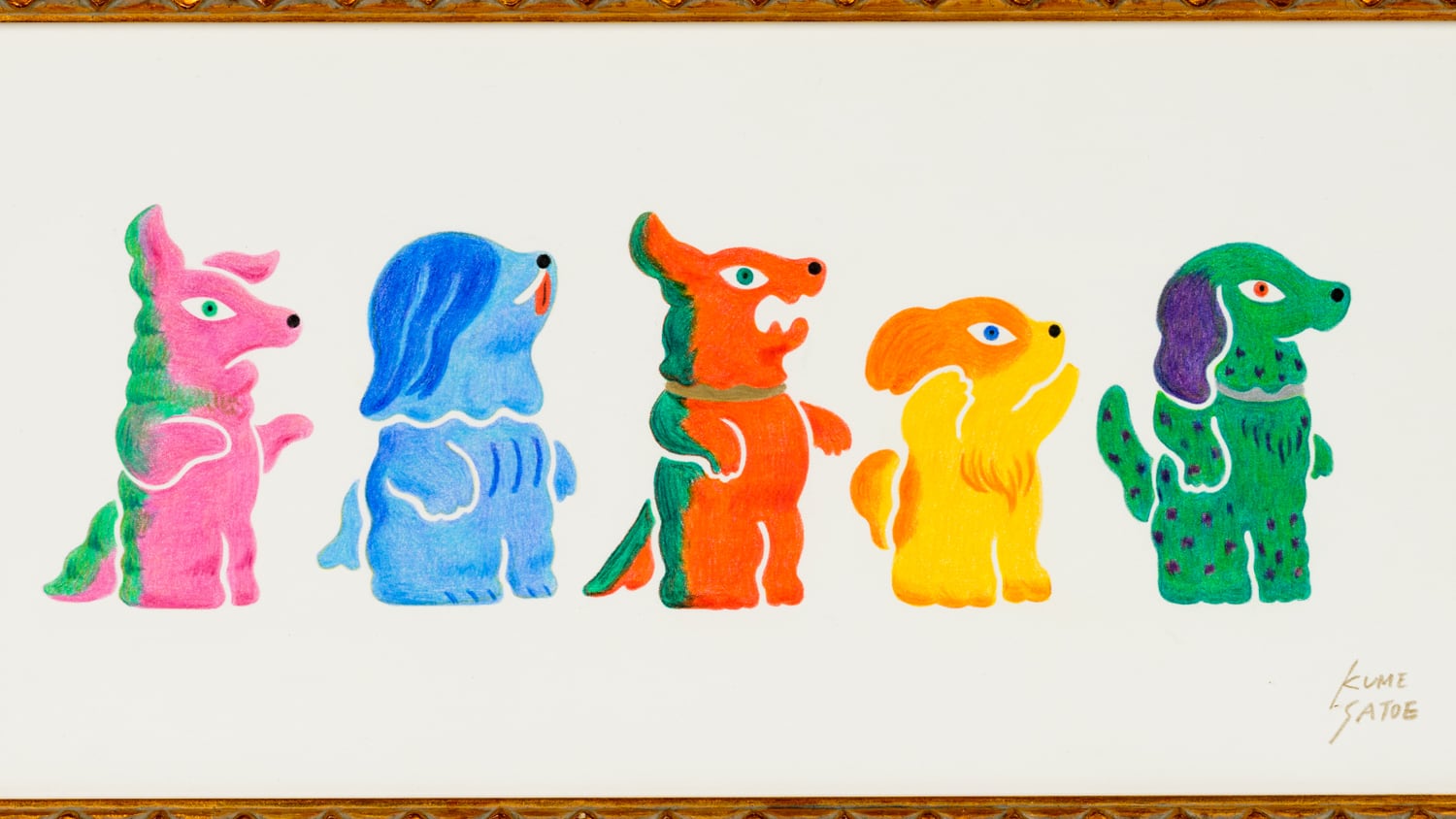 【会場売約済】久米理絵 原画5 「KAIJU DOGS colorful」 額装込み