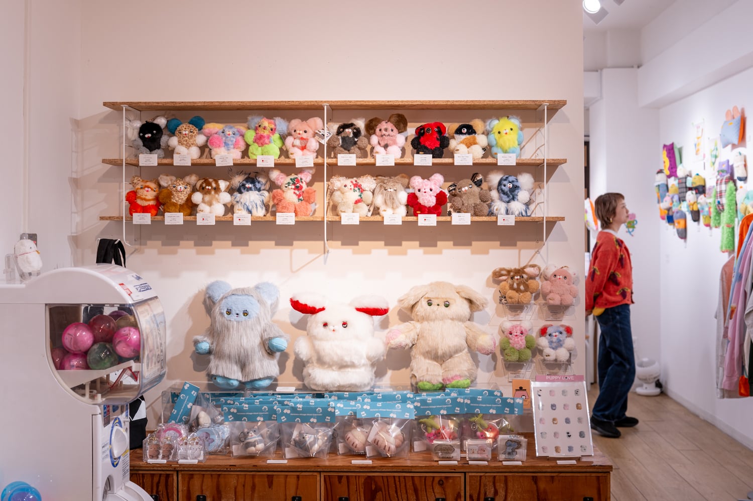 この度開催する個展 “PUPPY LOVE” では、瞳を小さなキャンバスに見立てて絵を描いた、新作のぬいぐるみたちを展示・販売いたします。その他にも、一点物のぬいぐるみキーチェーンや新作グッズなど盛りだくさんでご用意する予定です⭐︎ ぜひ、遊びに来てください!