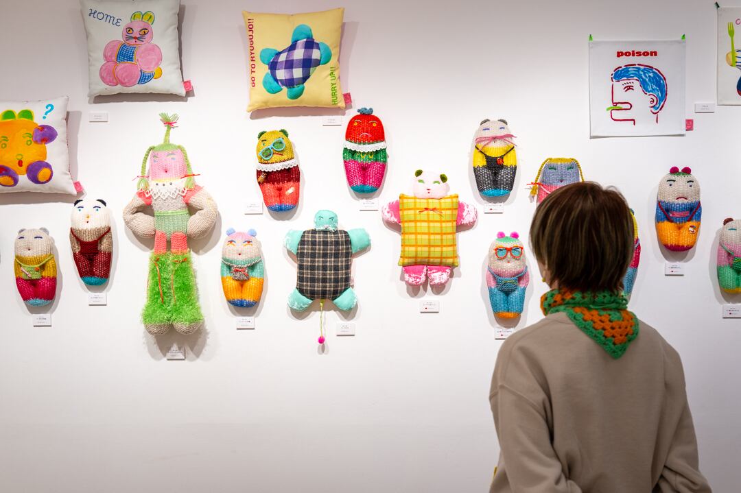 2026年3月4日(水)~15日(日)までトーキョーピクセルギャラリーで開催中のむくり個展「SEIKATSU HATENA」で展示販売している作品、グッズです。