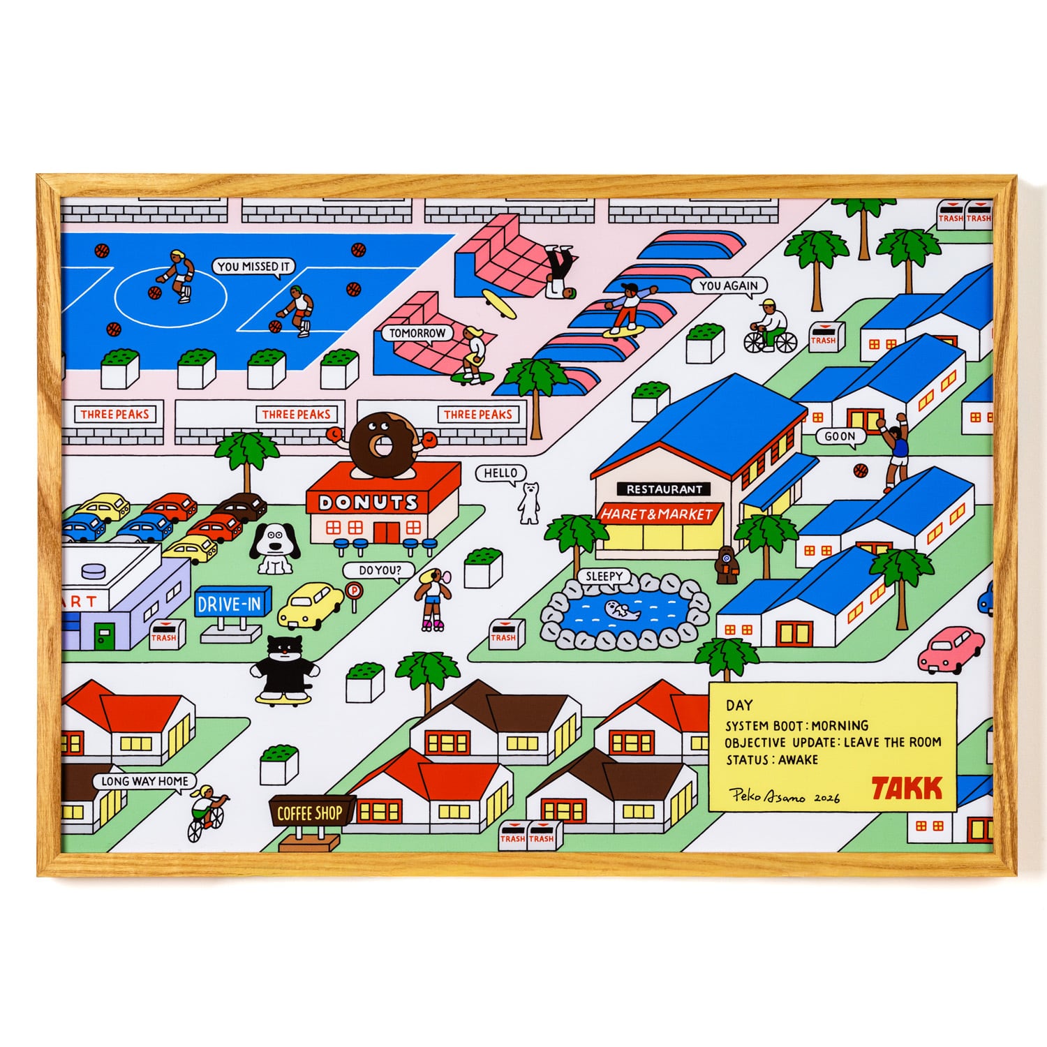 2026年4月3日(金)~2026年4月13日(月)までトーキョーピクセルギャラリーAで開催中の朝野ペコ個展「朝野ペコ個展「TAKK」」で展示販売している作品、グッズです。