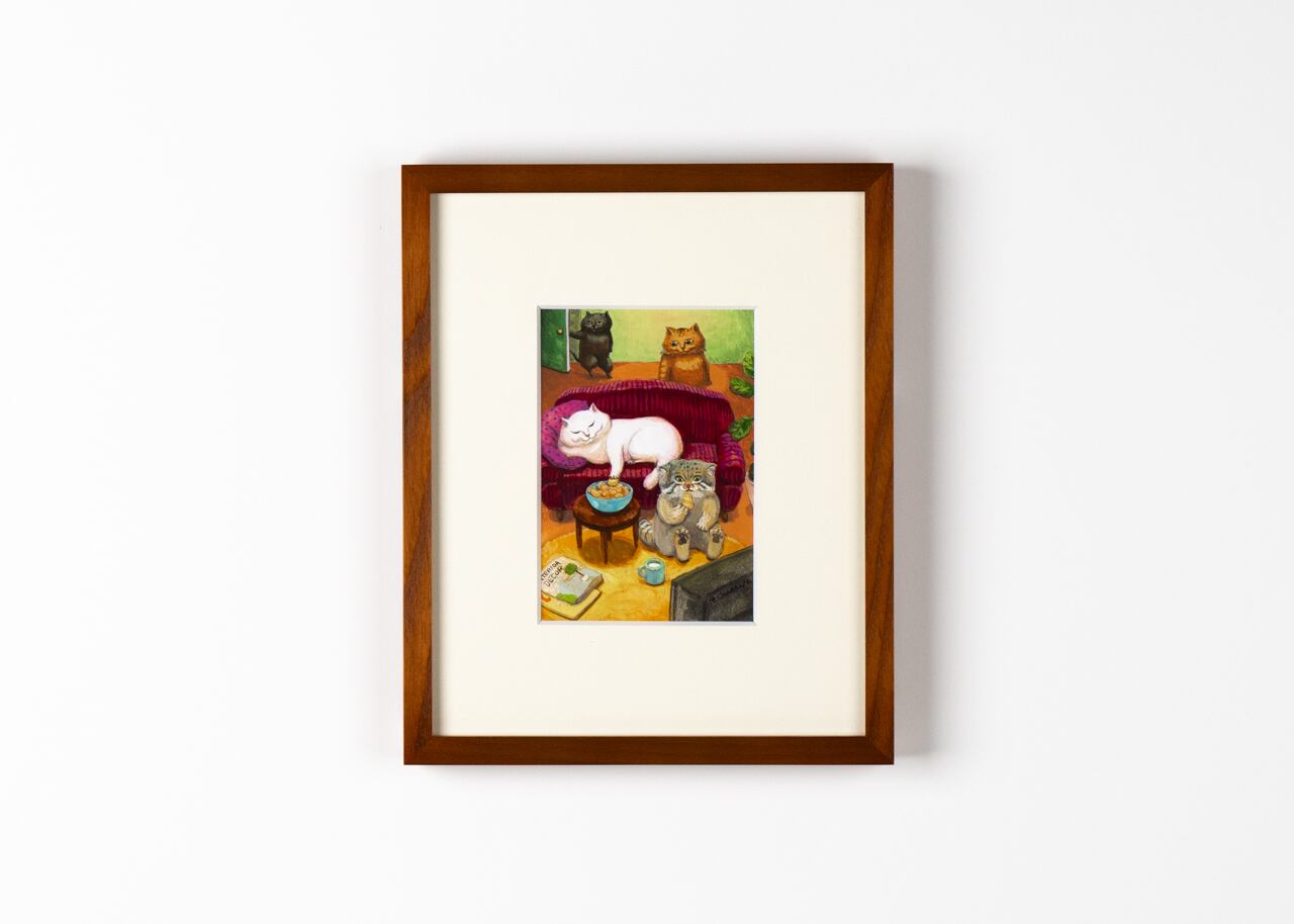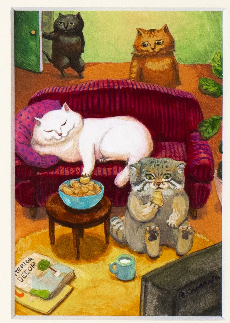 2023年11月15日(水)〜26日(日)までトーキョーピクセルギャラリーAで開催中のカマノレイコ個展「ねこの日常 その2」で展示販売している原画作品(抽選販売分)です。