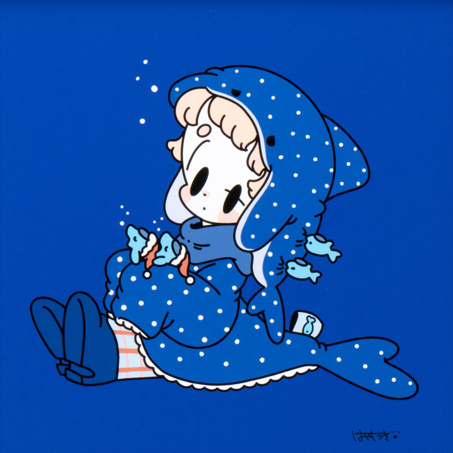 はやしうき 複製原画 6-1「ジンベエザメ」額あり、直筆サイン入り