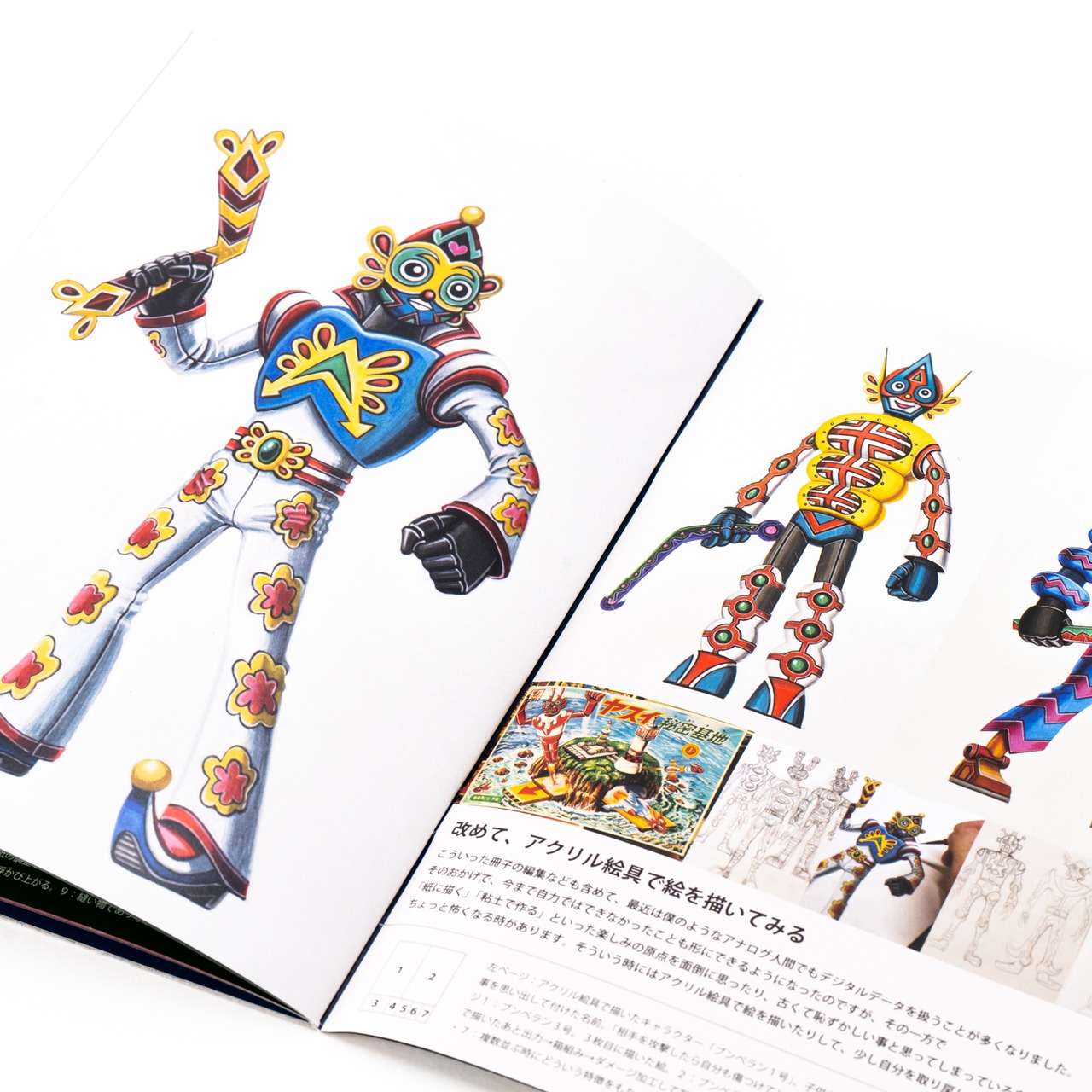 立体を中心とした創作活動、ライフワーク的作品「カミロボ」の制作、フィギュア造形など多岐にわたり活動。