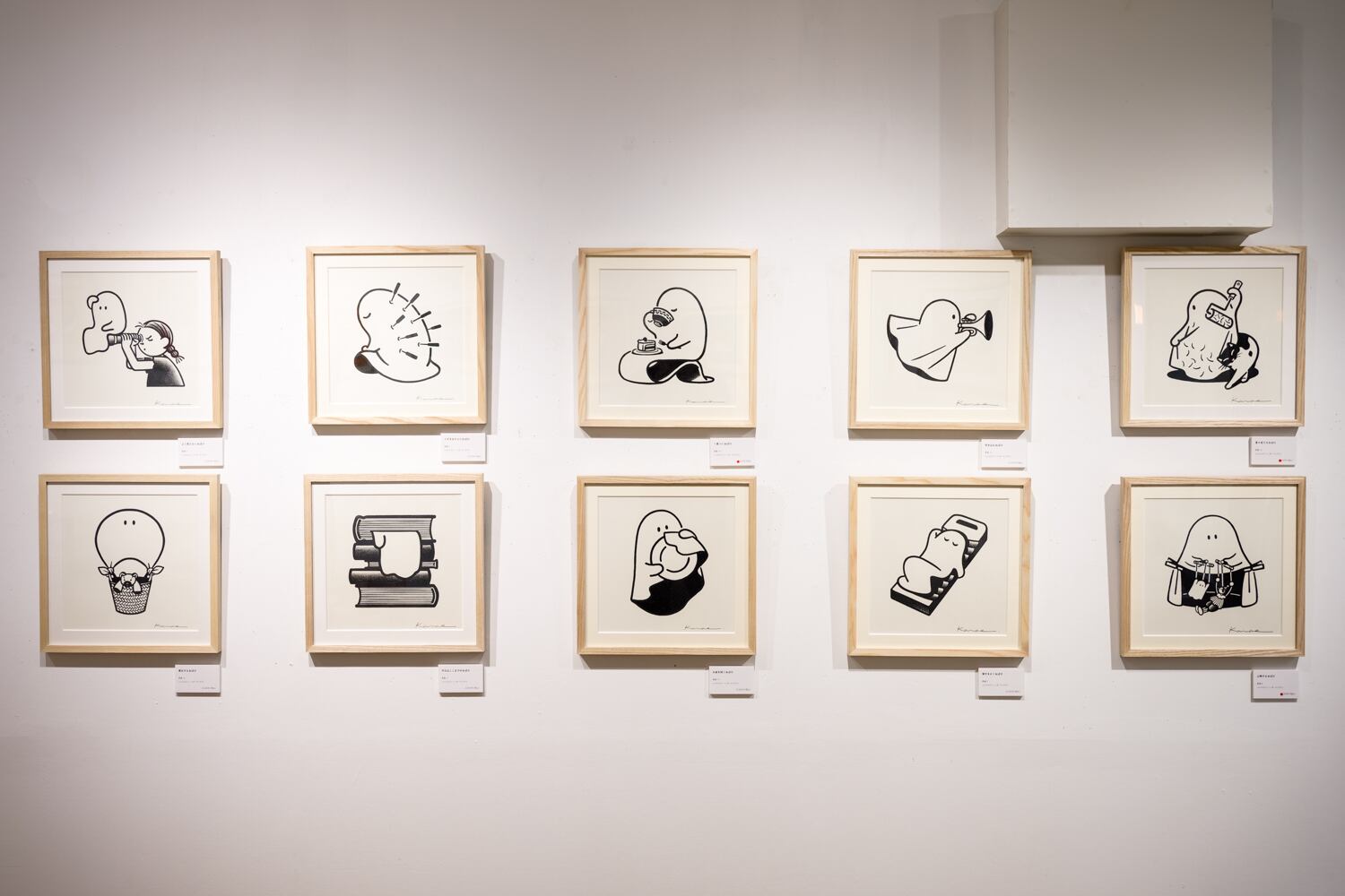 2024年10月16日(水)〜27日(日)までトーキョーピクセルギャラリーで開催中のはまぎし かなえ個展「うちにいるおばけ」で展示販売している作品、グッズです。
