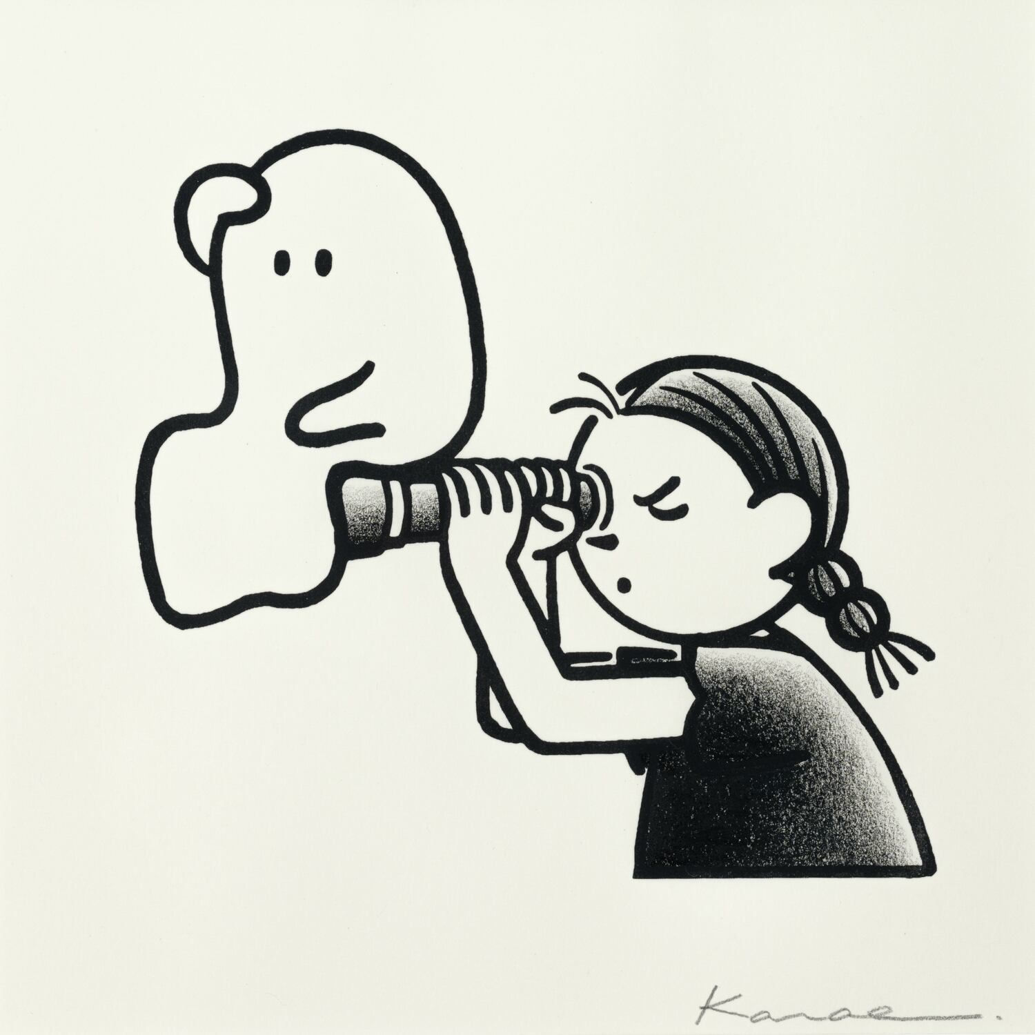 【会場売約済】はまぎしかなえ 原画7 「よく見えないおばけ」額付き、直筆サイン入り